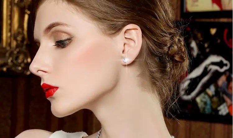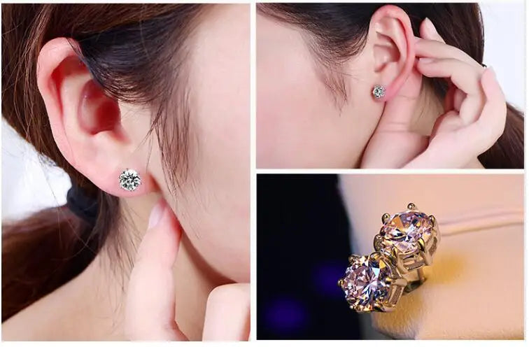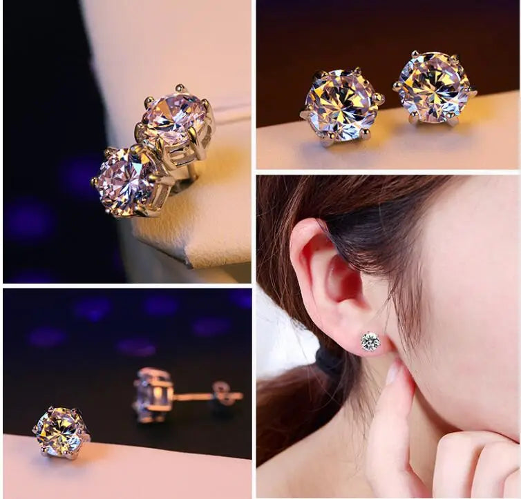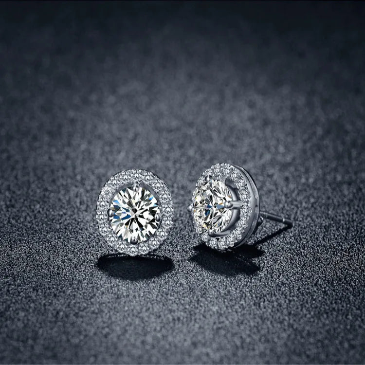 925 Sterling Silver Female Luxury Crystal Round Stud Earrings Vintage Wedding Jewelry White Zircon Stone Earrings For Women