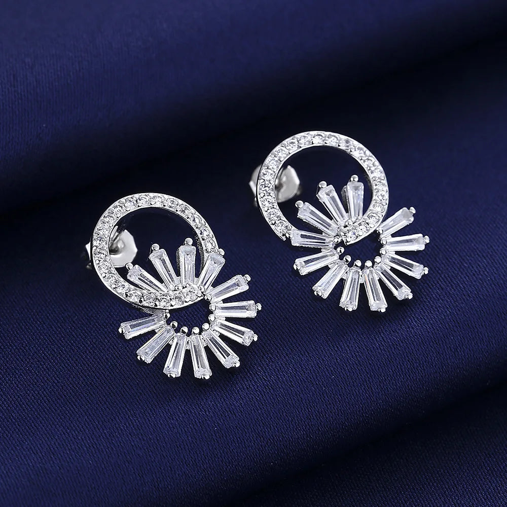 925 Sterling Silver Jewelry Women Fashion Cute Tiny Clear Crystal CZ Stud Earrings Gift for Girls Teens Lady E001
