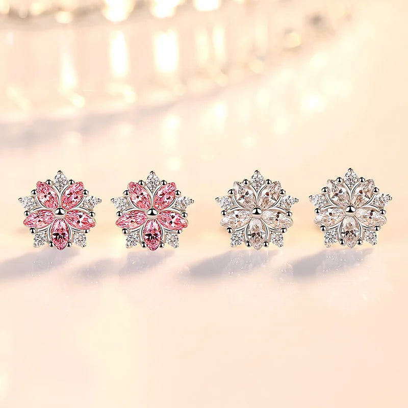 925 Sterling Silver New Woman Fashion Jewelry High Quality Blue Pink White Purple Crystal Zircon Hot Selling Earrings H009