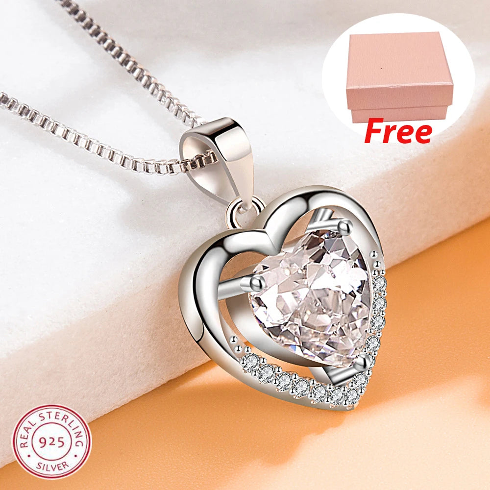925 Sterling Silver Winter Collection Sparkling Love Necklace Fit DIY Women Fashion Original Jewelry Gift