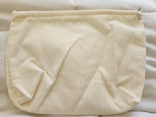 Love the corduroy fabric on this bag. It's spacious and holds all of my daily makeup with room to spare