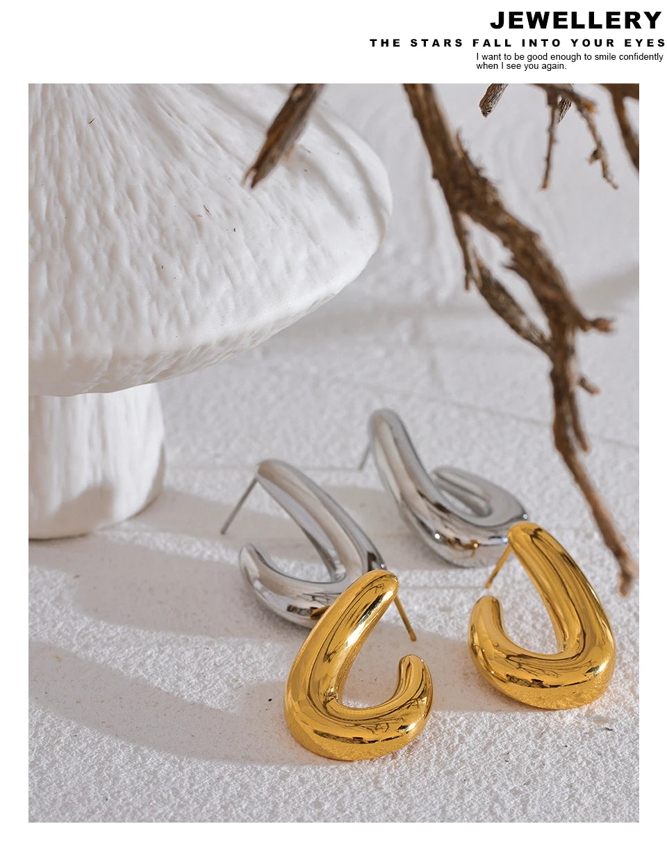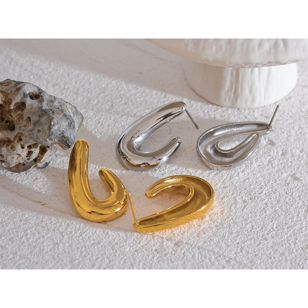Elysium 316l Stainless Steel Geometric Textured Stud Earrings Prevent Allergy 18K PVD Plated Metal Simple Jewelry for Women Gift