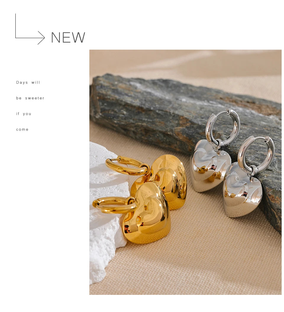 Elysium Exquisite Hollow Smooth Stereoscopic Heart Love Drop Dangle Daily Hoop Earrings Waterproof Stainless Steel Jewelry Women