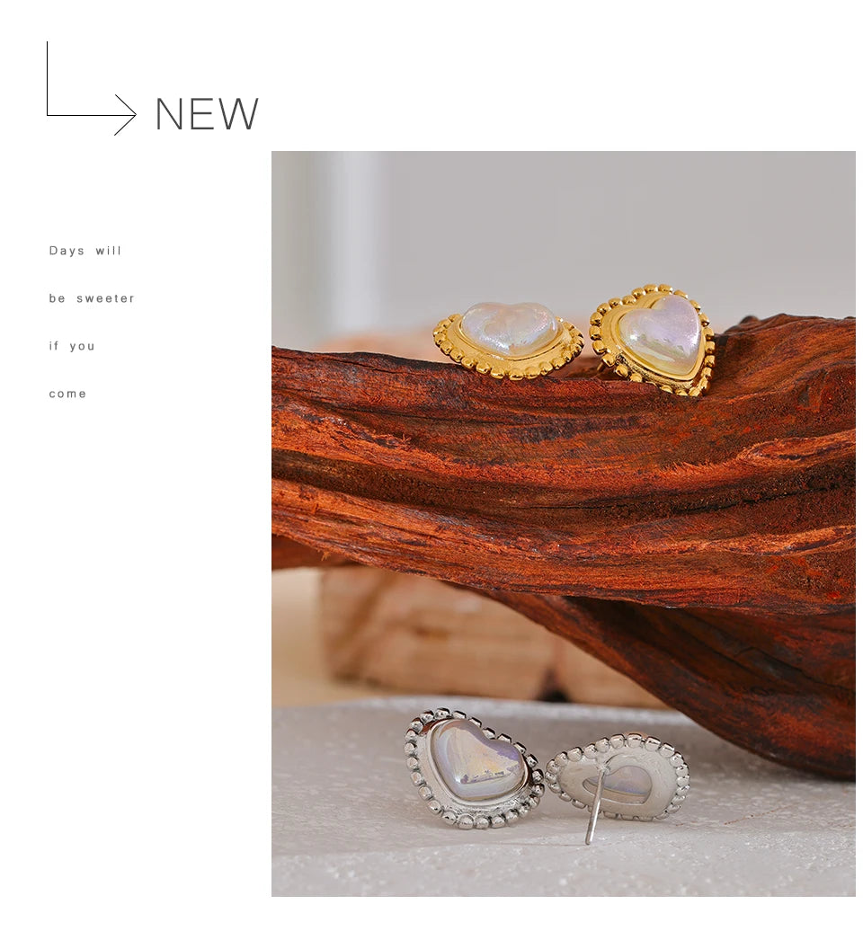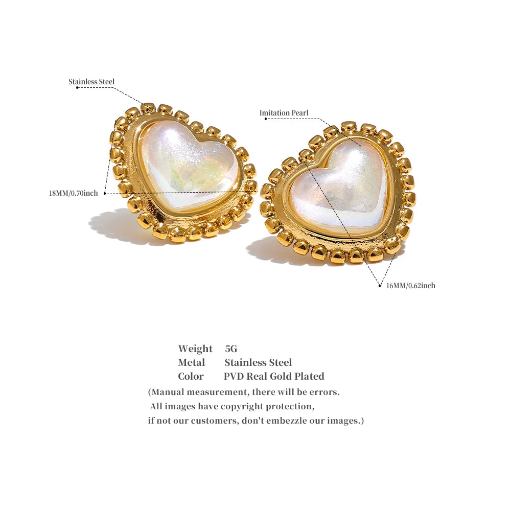 Elysium Exquisite Imitation Pearl Heart Love Daily Stud Earrings Women Water Resistant Stainless Steel Fashion Romantic Jewelry