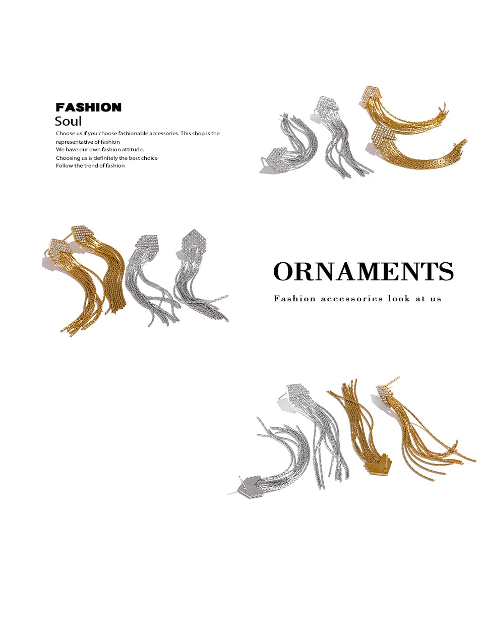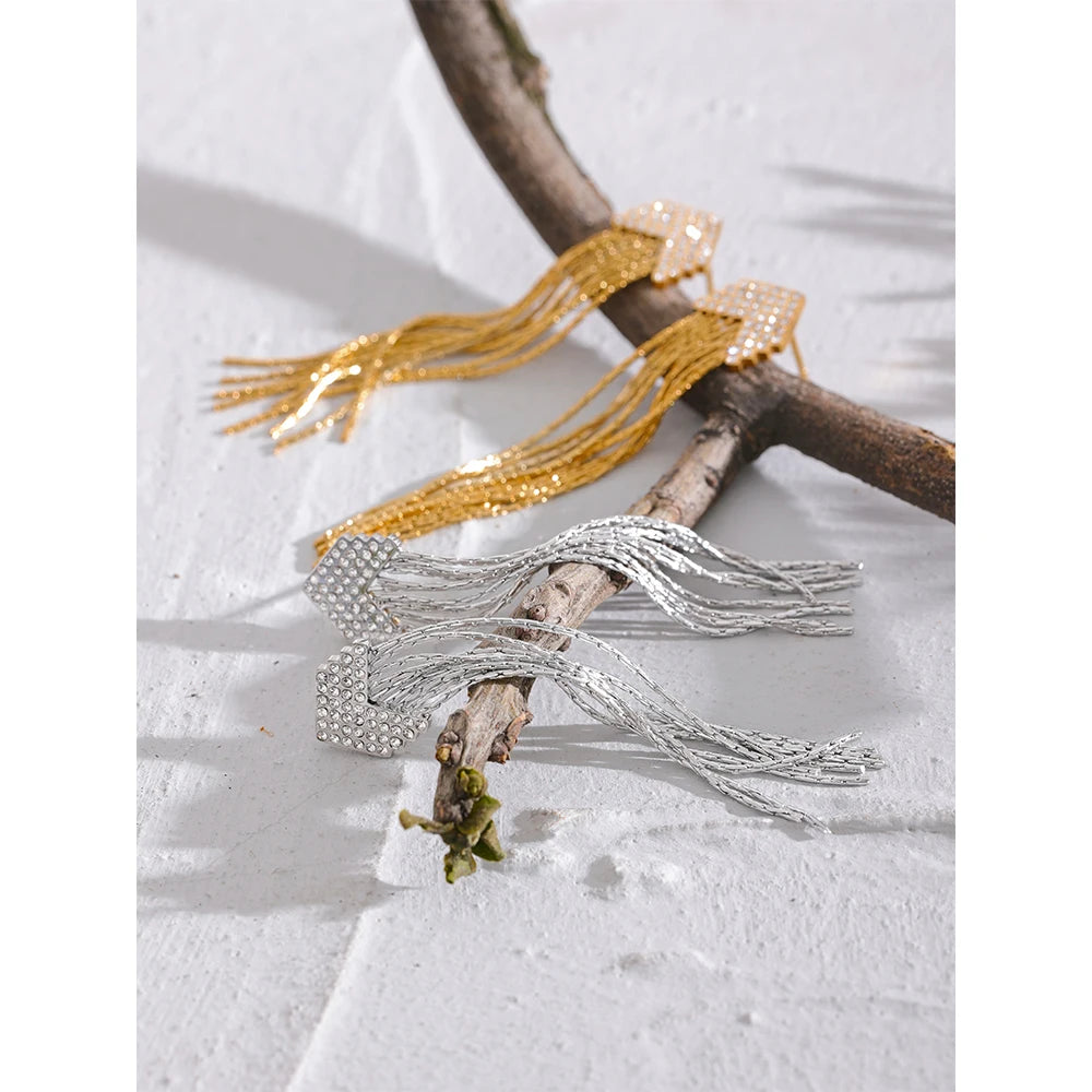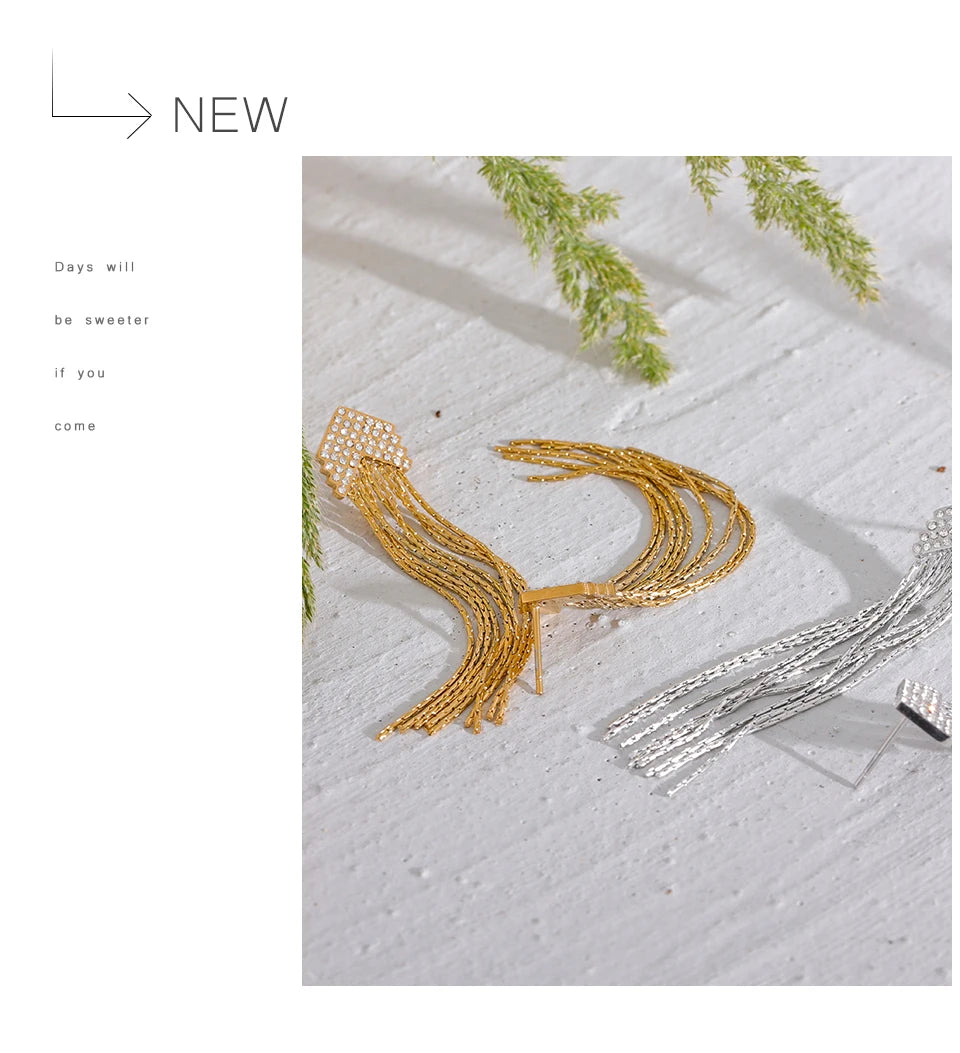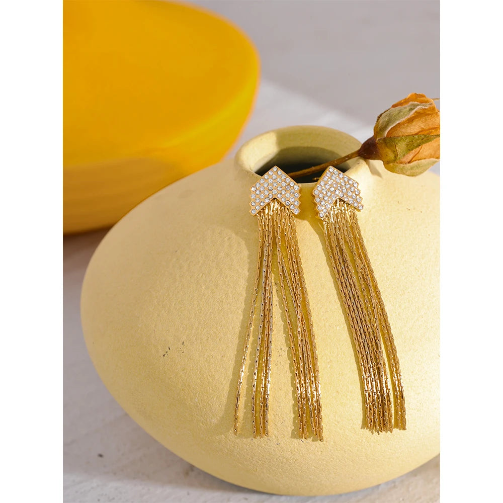 Elysium Fashion Arrow Cubic Zirconia Stainless Steel Long Tassel Drop Dangle Earrings for Women Gold Color Party Trendy Jewelry