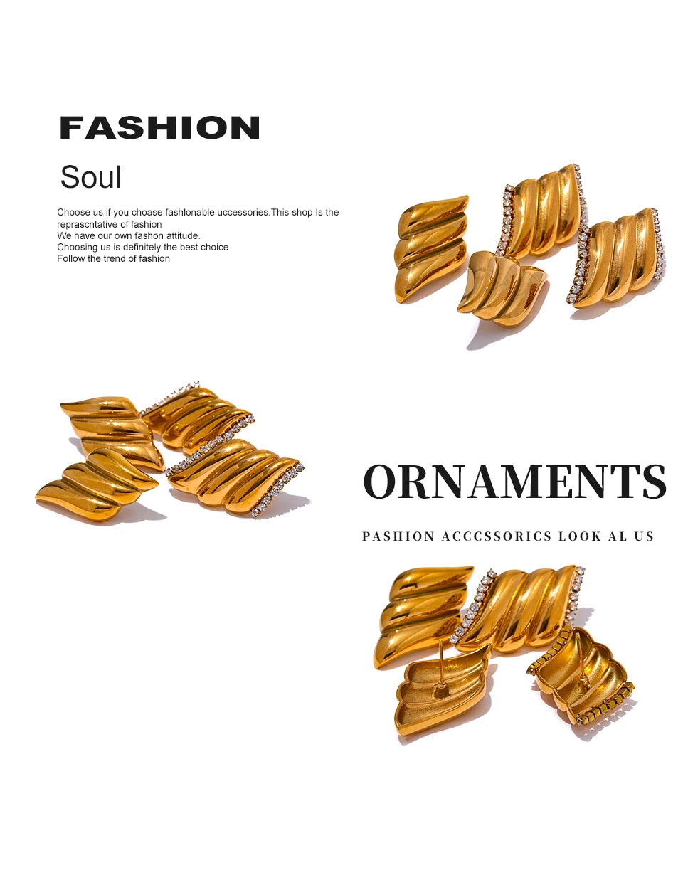 Elysium High Quality Stainless Steel Geometric CZ Stud Earrings Waterproof Zircon Personalized Metal Versatile Jewelry Gala Gift