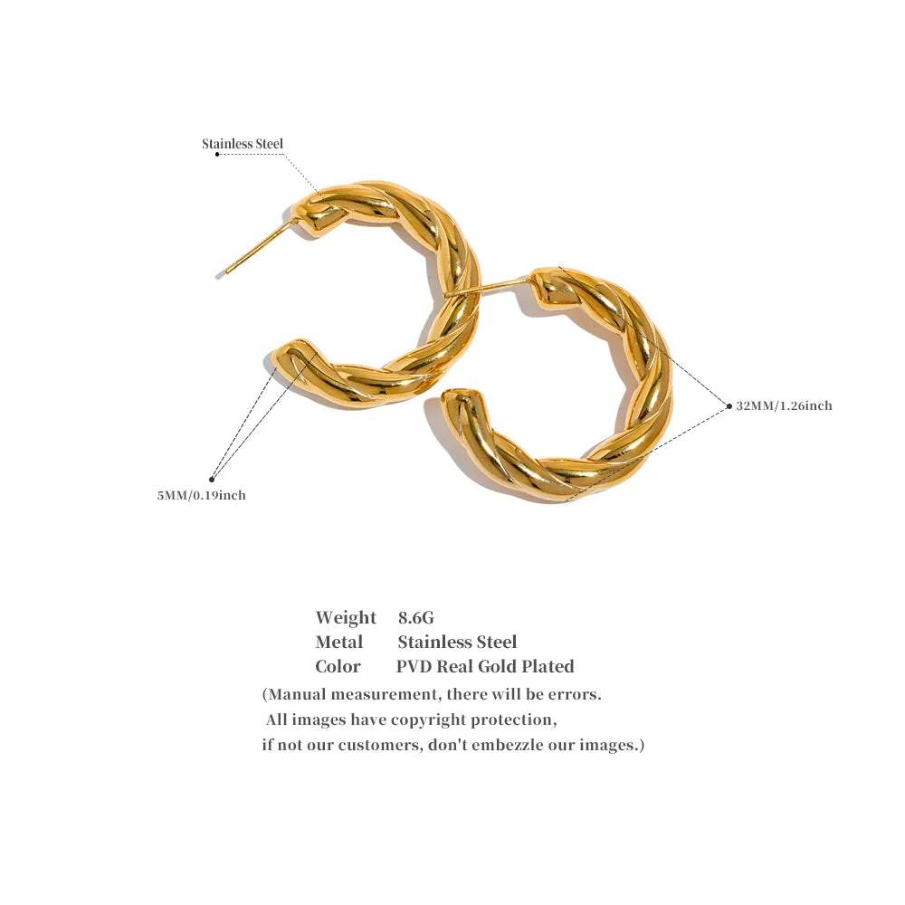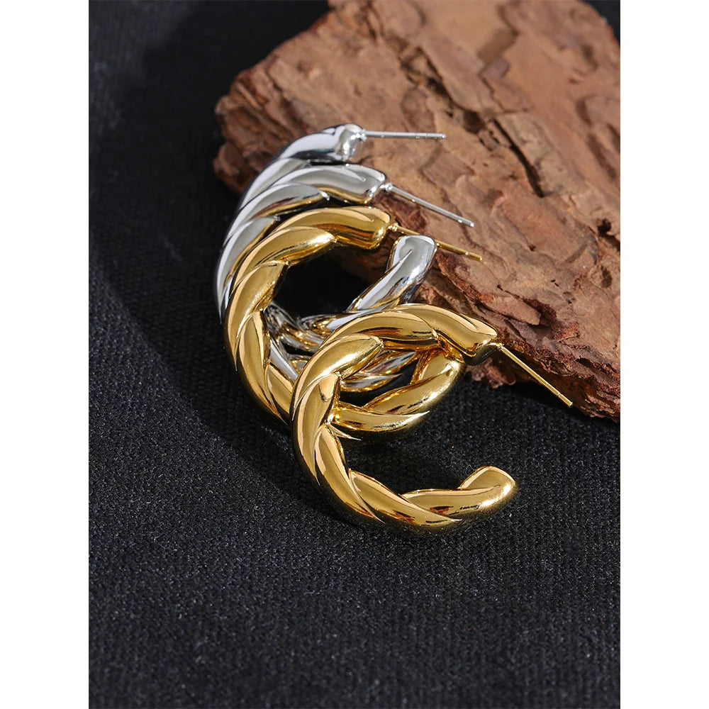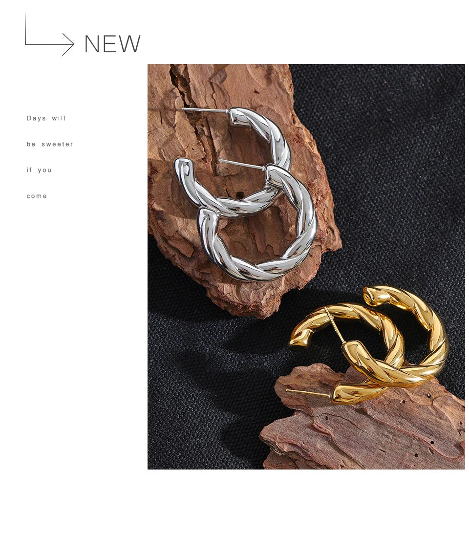 Elysium Stainless Steel C Shape Geometric Twisted Unusual Earrings Gold Silver Color Metal Women Daily Wear Jewelry High Quality